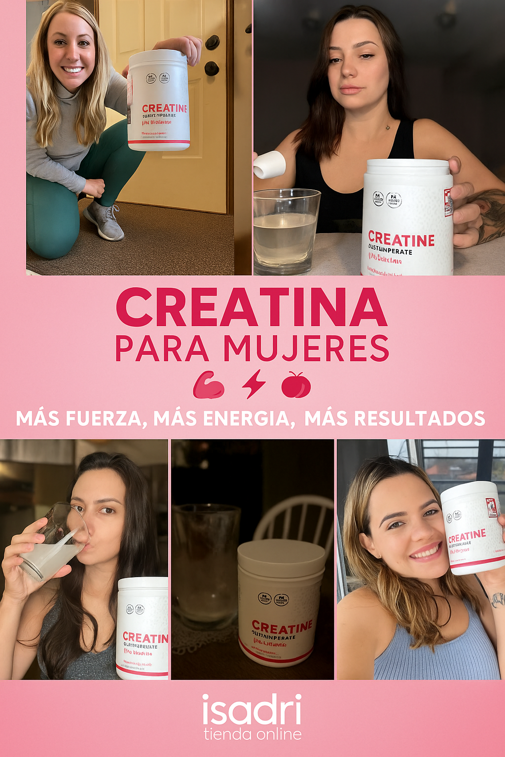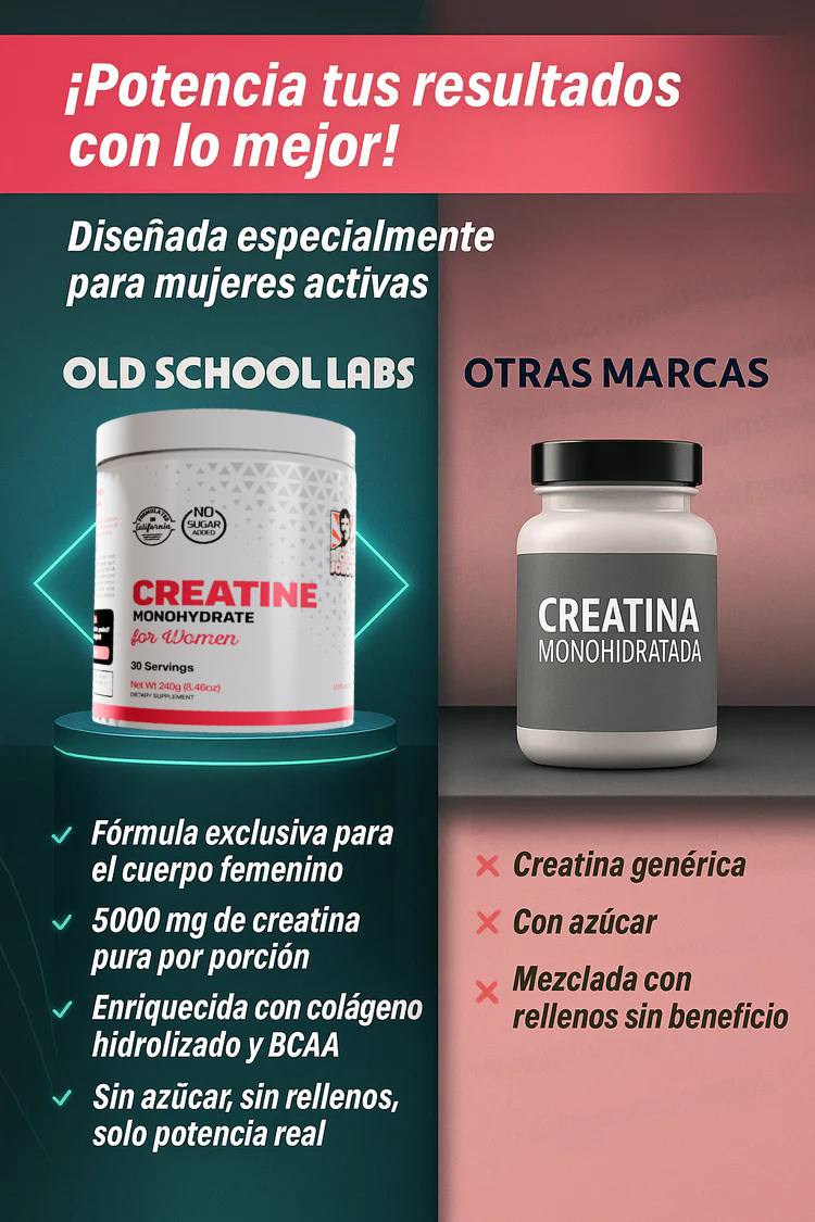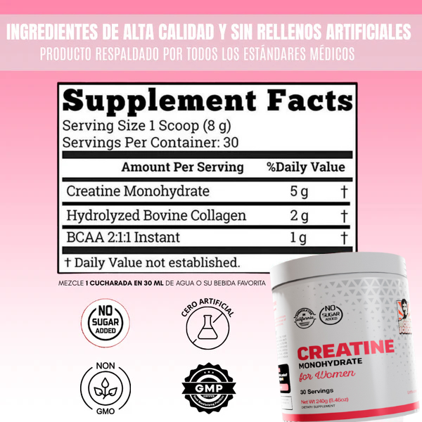👉 No. Es creatina monohidratada pura + colágeno hidrolizado. Ingredientes seguros, sin rellenos, sin azúcar y respaldados por estándares médicos.