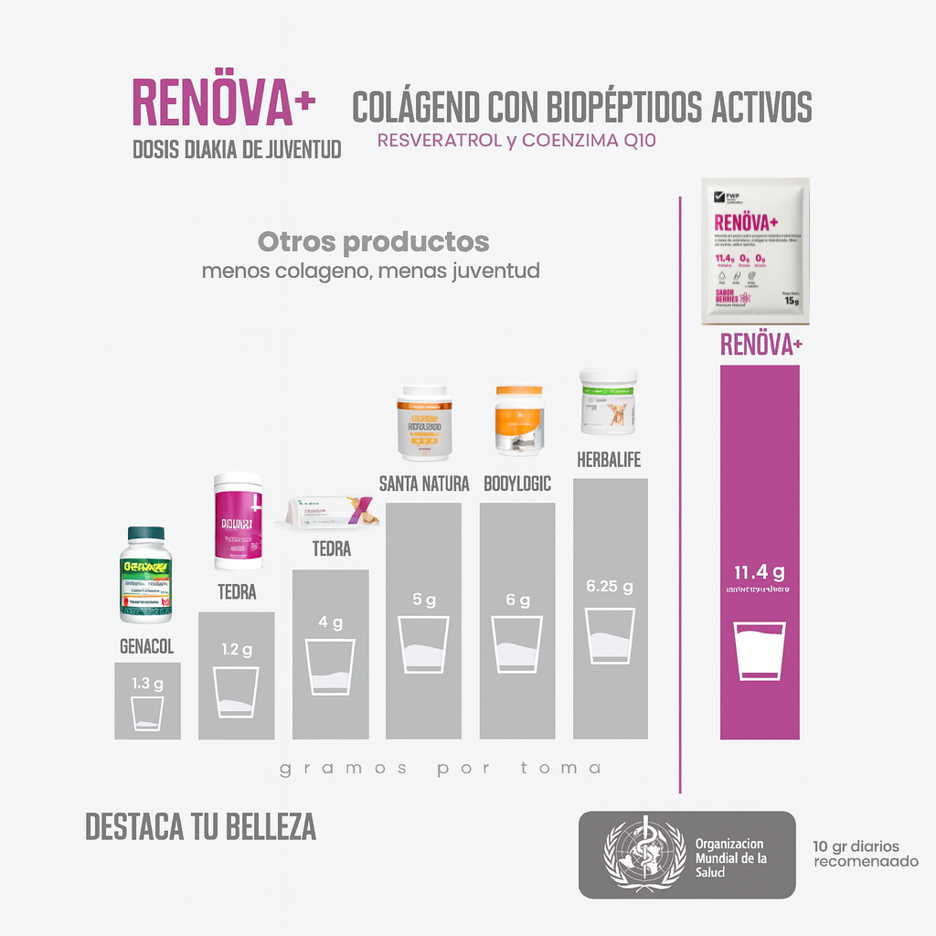 🥇 RENÖVA+ tiene la dosis de colágeno más poderosa del mercado💪